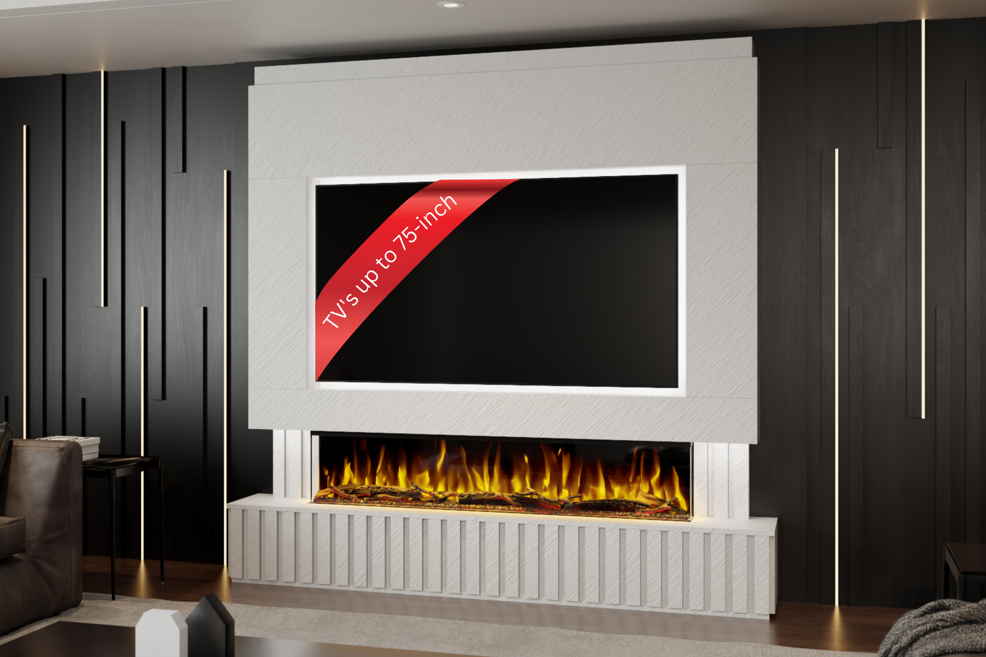 Our media wall packages are designed with ease of installation in mind without the need for any inconvenience of having builders or plasters in your home. Our high-quality pre-built media wall packages including our own 3-sided electric fires can be installed in under 1 hour.